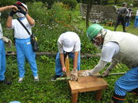 のこぎりで竹をカット!コップや花瓶ができたよ。